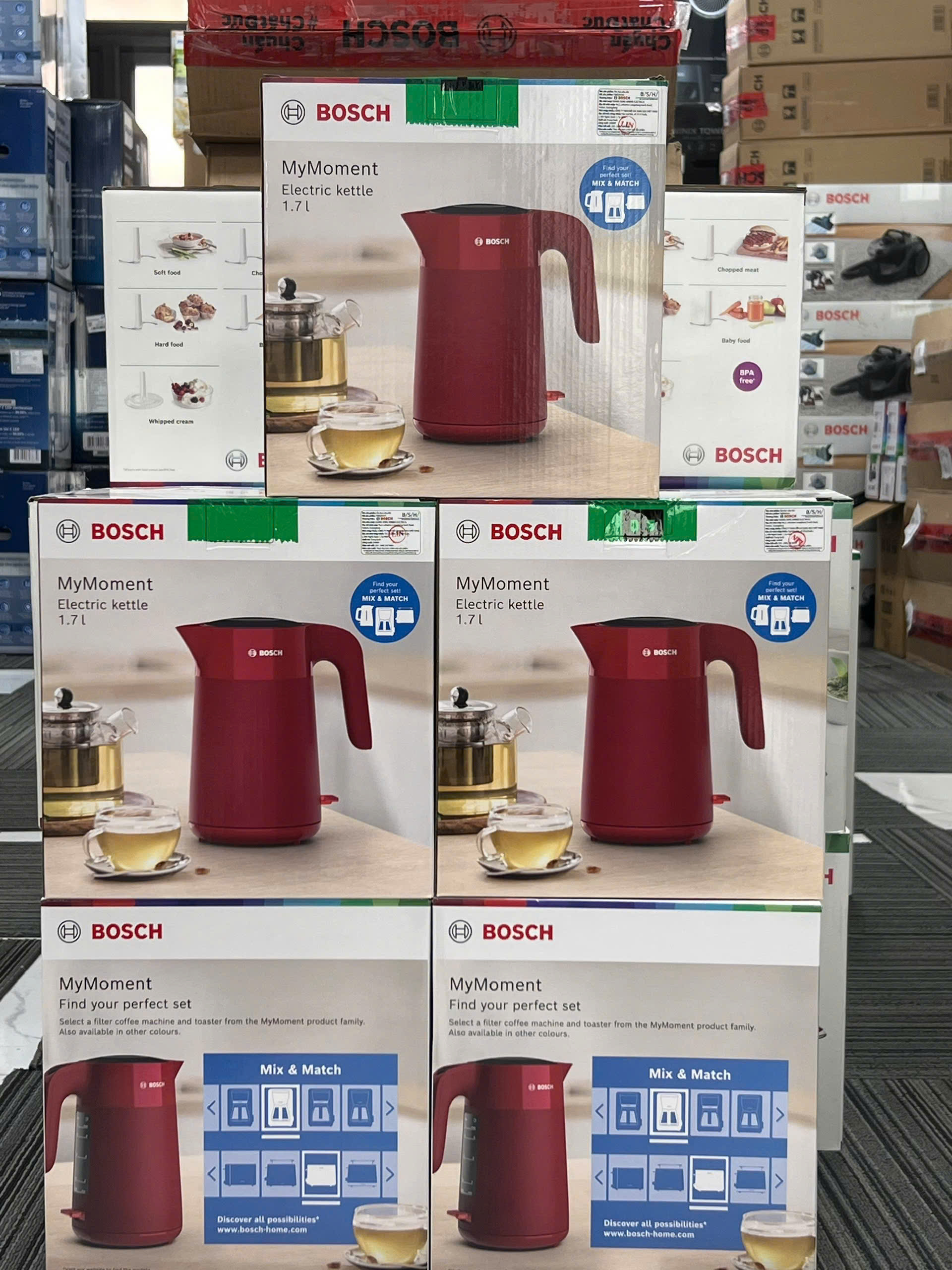 Trong số các phiên bản màu sắc, màu đỏ của Bosch TWK2M164 đặc biệt nổi bật và cuốn hút. Gam màu này không chỉ mang đến sự trẻ trung, năng động mà còn tạo điểm nhấn ấn tượng và cá tính trong không gian bếp. Bên cạnh đó, theo quan niệm phong thủy, màu đỏ tượng trưng cho năng lượng, sự may mắn và hạnh phúc, giúp mang đến cảm giác ấm áp khi sử dụng.
