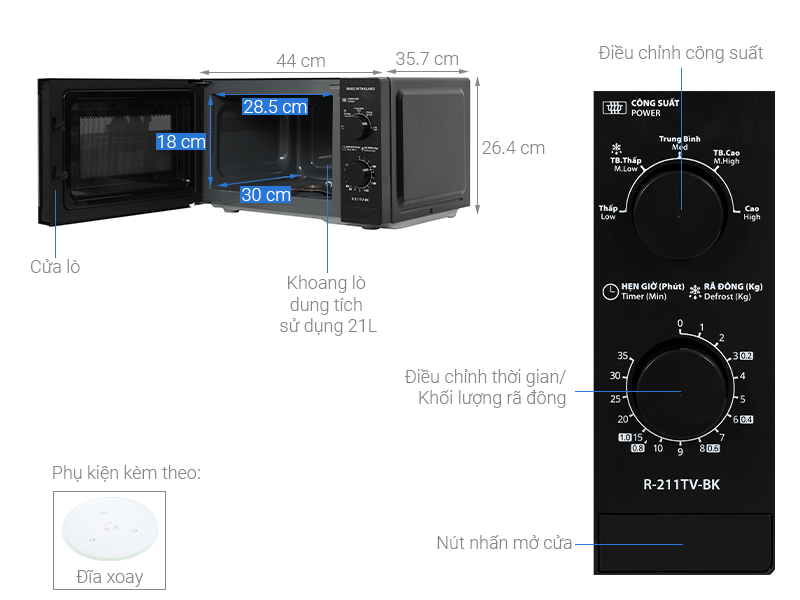 Thông số kỹ thuật Lò vi sóng Sharp 21 lít R-211TV-BK
