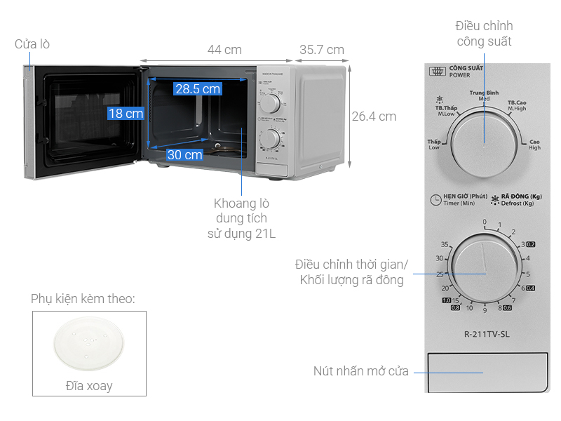 Thông số kỹ thuật Lò vi sóng Sharp 21 lít R-211TV-SL