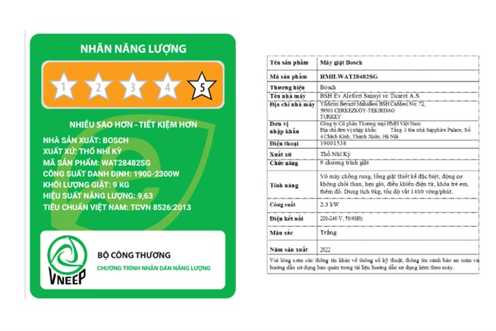 Thông số kỹ thuật Máy giặt Bosch 9 kg WAT28482SG serie 6