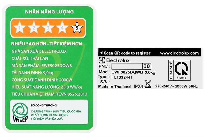 Thông số kỹ thuật Máy giặt Electrolux UltimateCare 100 Inverter 9 kg EWF9025DQWB