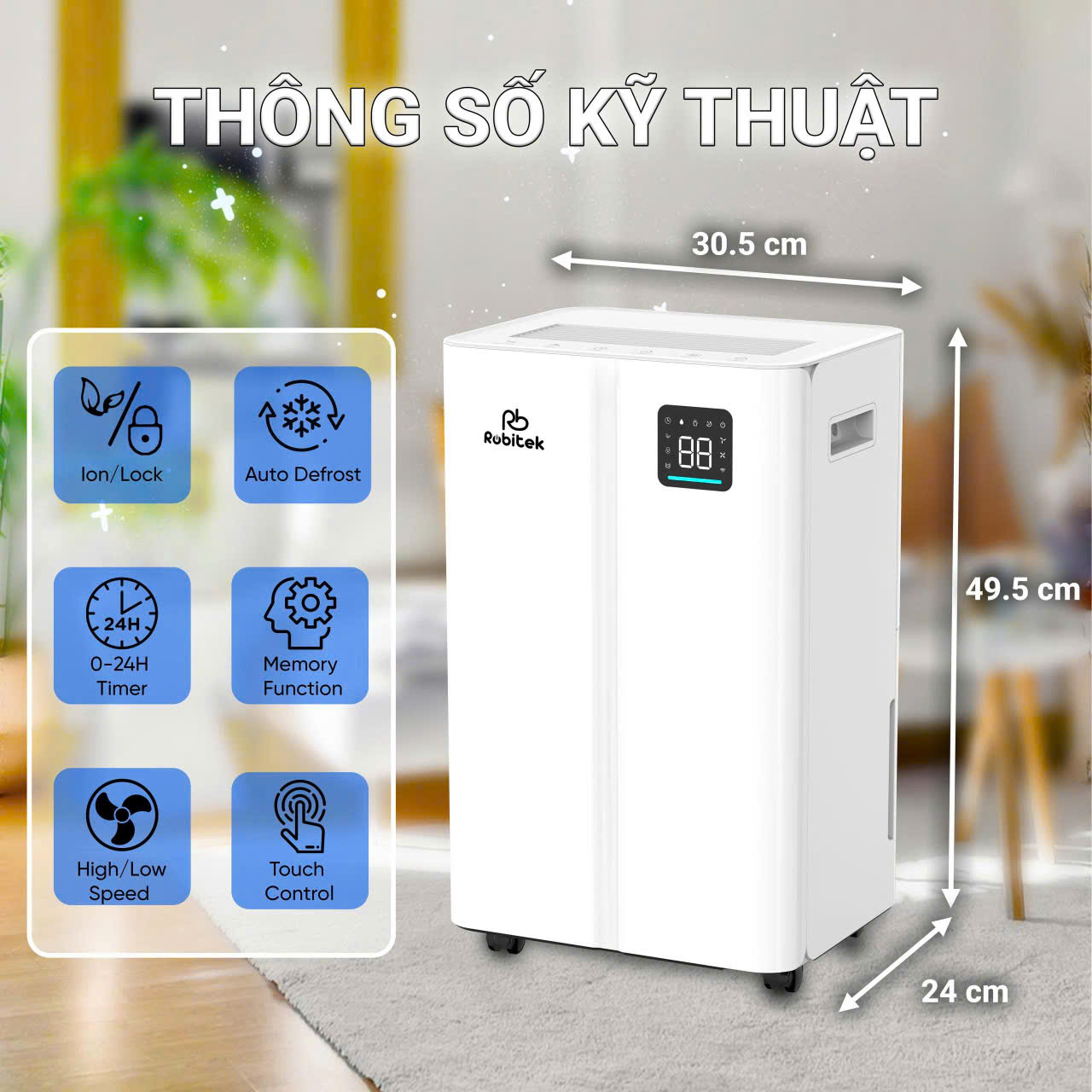 Thông số kỹ thuật Máy hút ẩm 25 lít Robitek DH25