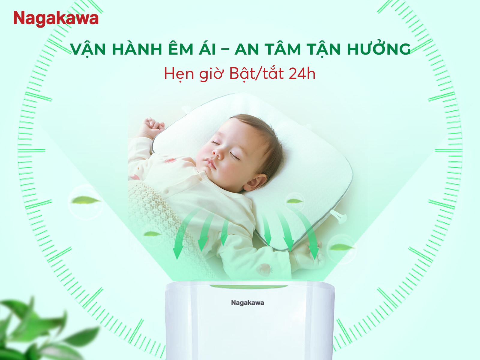 Bên cạnh đó, máy hoạt động ổn định, độ ồn thấp giúp máy hút ẩm Nagakawa hoạt động êm ái, không gây ảnh hưởng đến sinh hoạt và giấc ngủ của gia đình bạn.