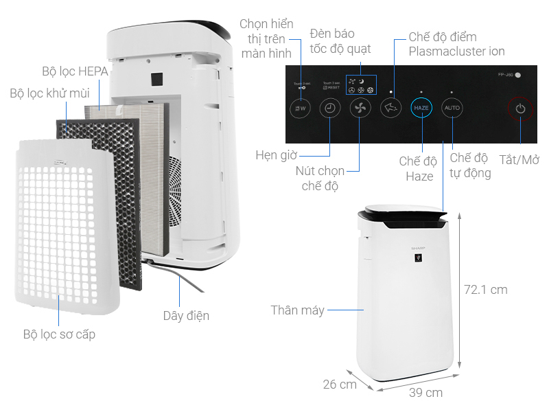 Thông số kỹ thuật Máy lọc không khí Sharp FP-J60E-W