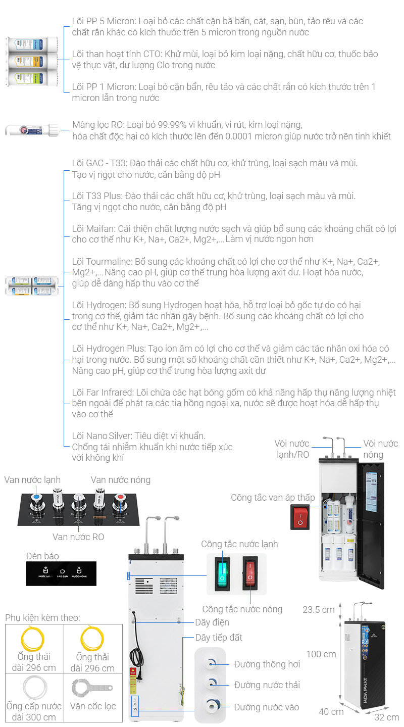 - Lõi Nano Silver (Sx Việt Nam): Tiêu diệt vi khuẩn, chống tái nhiễm khuẩn trong quá trình nước lưu thông trong hệ thống lọc.