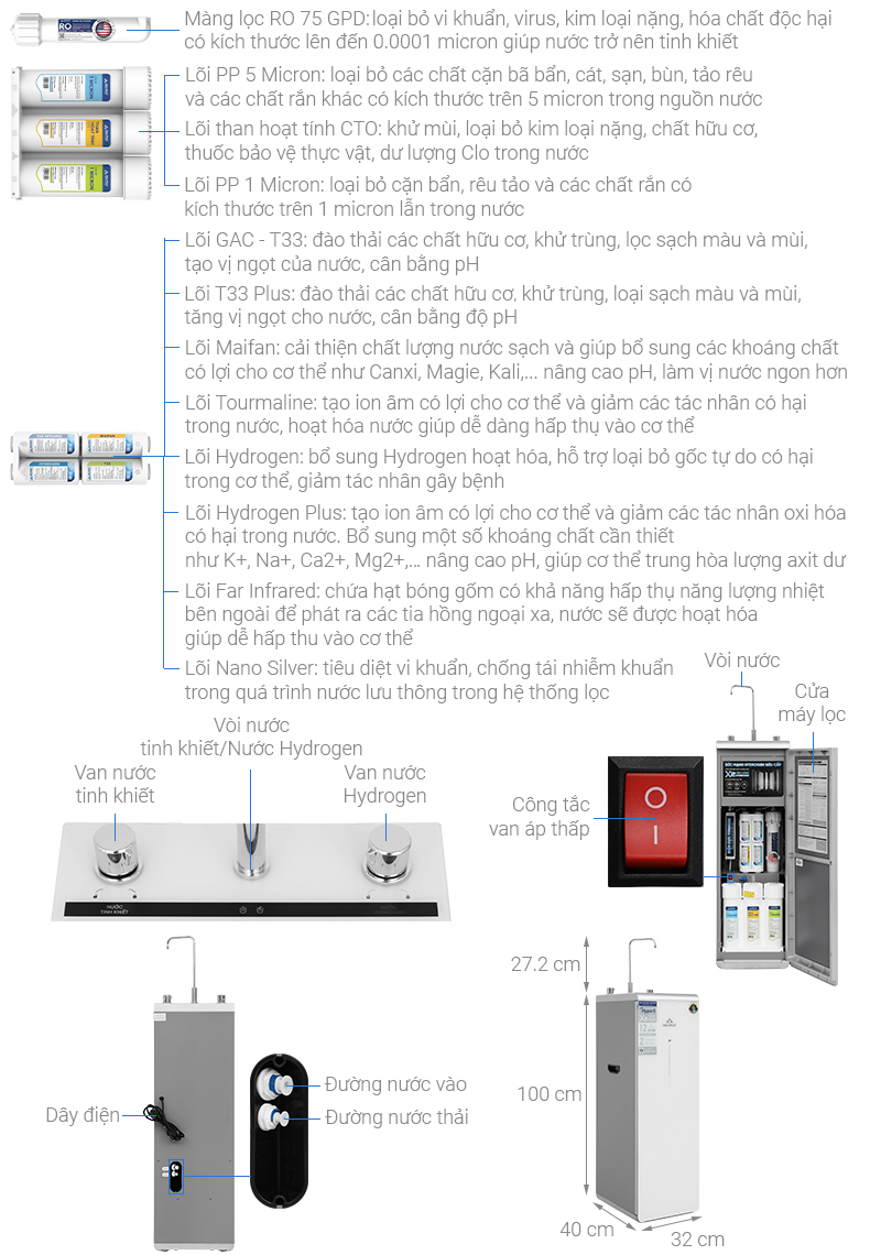 - Lõi Nano Silver: diệt khuẩn, chống tái nhiễm khuẩn, đảm bảo an toàn nước đầu ra.