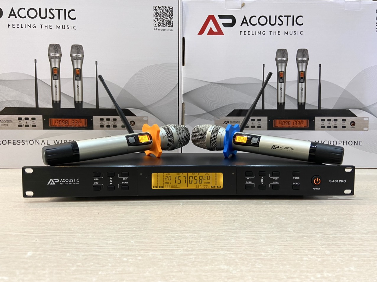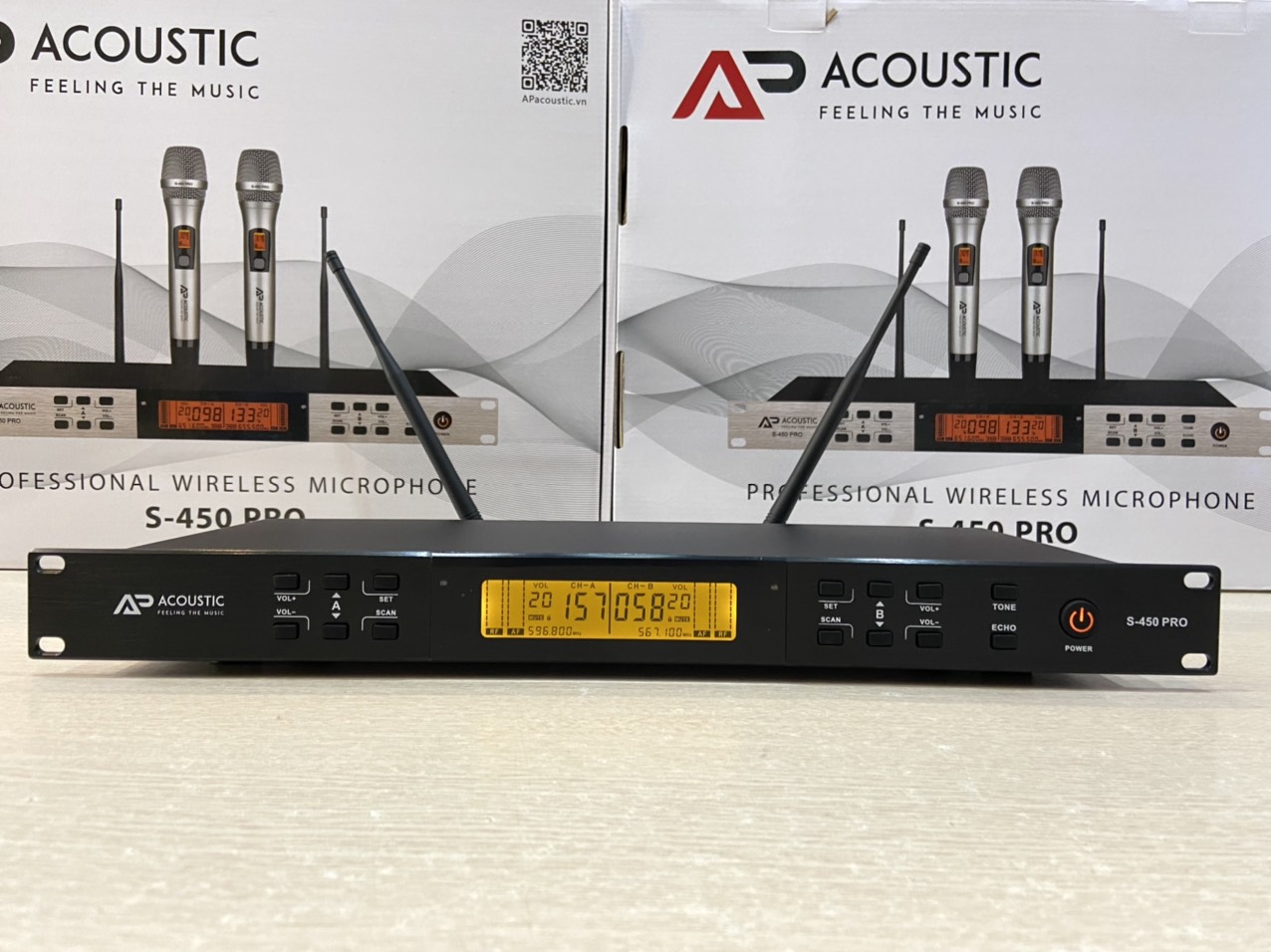 Micro không dây AP ACOUSTIC S-450 PRO với nhiều tính năng hiện đại sử dụng cho hát karaoke, hội trường, phát biểu, biểu diễn...