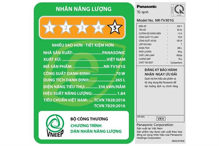 Thông số kỹ thuật Tủ lạnh Panasonic Inverter 265 lít NR-TV301GVKV