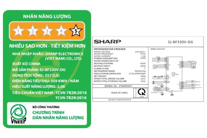 Thông số kỹ thuật Tủ lạnh Sharp Inverter 323 lít SJ-BF330V-DG