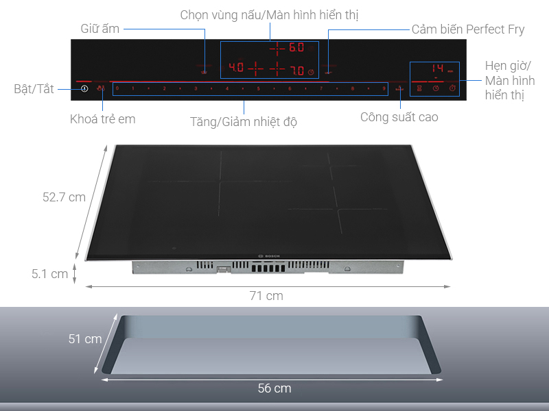 Thông số kỹ thuật Bếp từ 3 vùng nấu lắp âm Bosch PID775DC1E