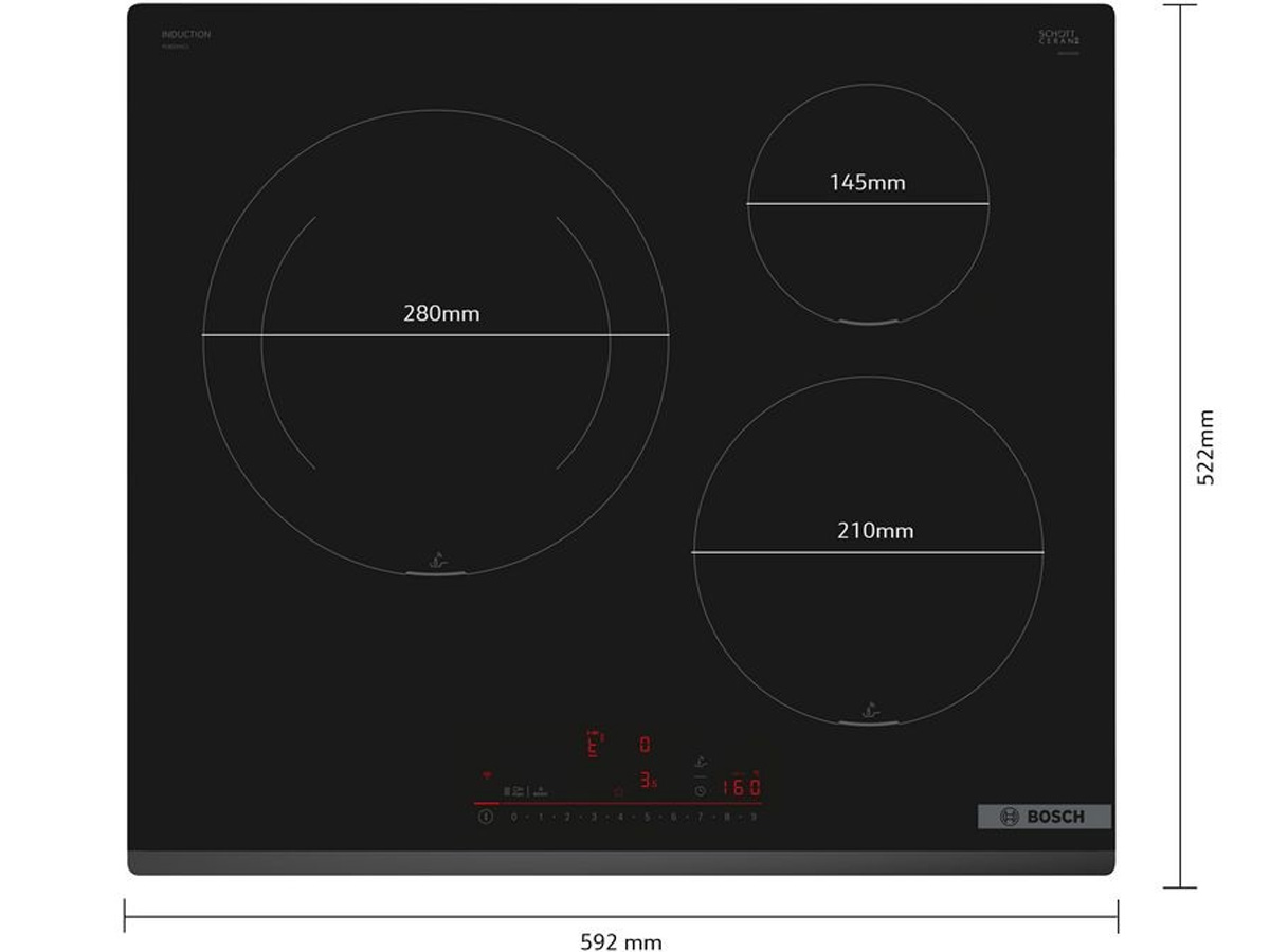 Thông số kỹ thuật Bếp từ 3 vùng nấu lắp âm Bosch PIJ631HC1E