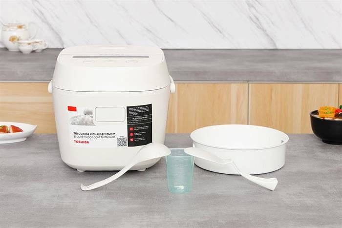 Nồi cơm điện tử Toshiba RC-18DR5UVN(W) với dung tích 1.8 lít phù hợp cho gia đình 4 - 6 người, sở hữu công nghệ nấu 3D giúp cơm chín đều tơi xốp, tích hợp 12 chương trình cài đặt sẵn tiện lợi. Đặc biệt, sản phẩm còn được ứng dụng công nghệ kích hoạt Enzyme Umami giúp tăng vị thơm ngọt tự nhiên của hạt gạo.
