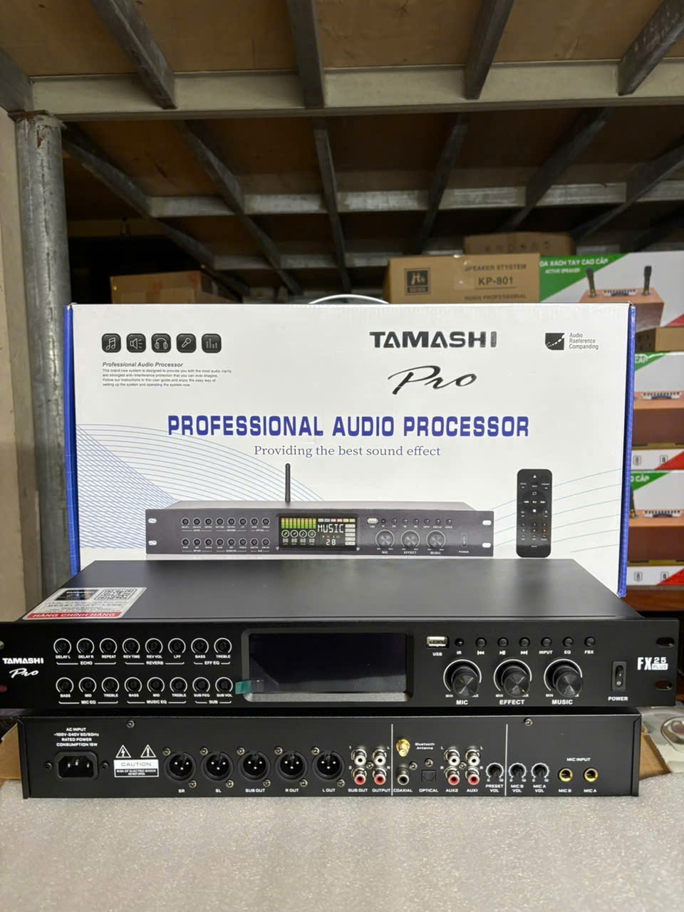 - Hàng loạt các công nghệ âm thanh tiên tiến được tích hợp trong Vang Tamashi Pro Fx25 với hàng loạt tính năng điều chỉnh âm thanh chuyên nghiệp như vang số - EFF EQ, MUSIC EQ, MIC EQ, - Cắt SUB - DELAY L VÀ R riêng , Delay Time , Repeat , Exciter , cắt LPF echo - Reverb Time , reverb vol , Cắt LPF reverb - EQ số tự động tích hợp cho 5 thể loại nhạc khác nhau : Classic , Pop , Rock , Jazz , Country.